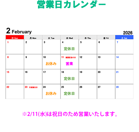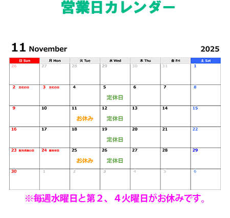 定休日 毎週水曜日、第2・4火曜日