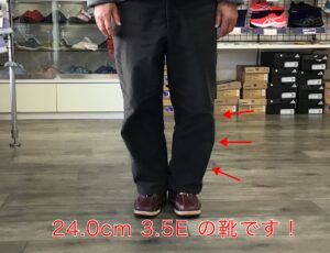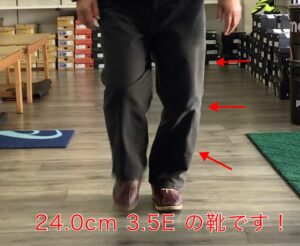 今日履いてこられた靴は、24.0cmの3.5Eの幅広モデルです…