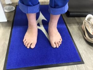 スタッフ:「そうですか、そうしましたら足ドックというのをやっておりまして、足のサイズ計測、足部や体のバランス、歩き方のバランスなど総合的にみて、今のお子様の状態をご説明できますが・・・」