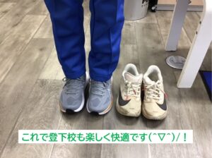 お客様(母):「中学生なんですが、普段靴を新しくしたいので足をみてもらって選びたいんですけど・・・」